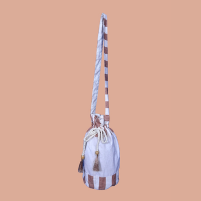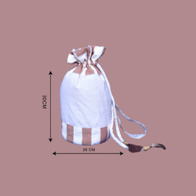 | Specification | Handcrafted handloom potli with a drawstring closure and a matching long fabric handle. The potli features a soft cotton lining inside, combining elegance with everyday functionality. |