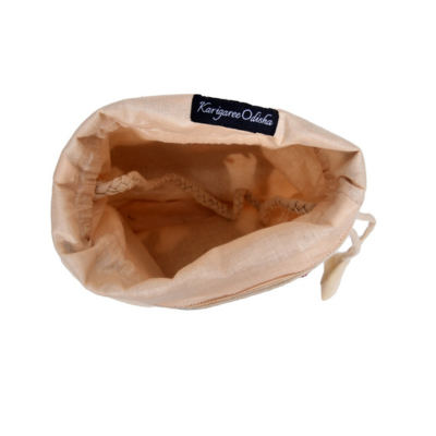 Inspired by the storytelling tradition of Odisha’s Pattachitra art, this handcrafted potli features a beautifully rendered Pattachitra elephant motif, hand-painted on traditional Odisha handloom cotton. Every detail reflects the precision, narrative style, and cultural depth that define this centuries-old art form.