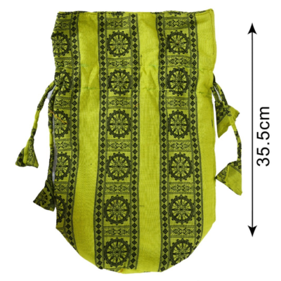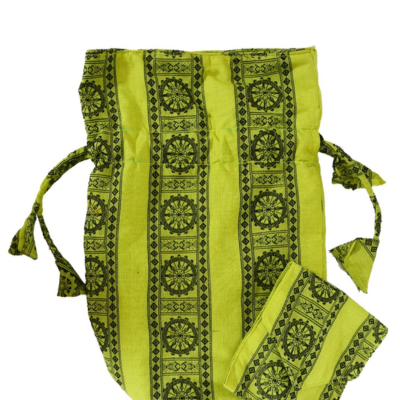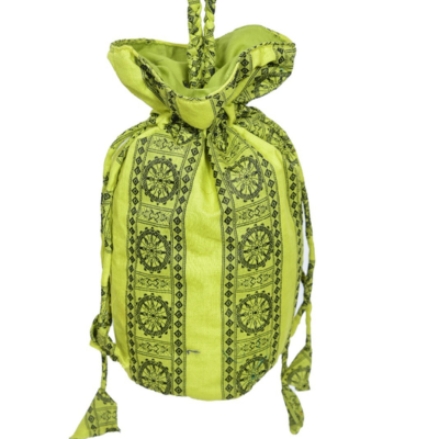 Specification Handcrafted Handloom Cotton Potli with drawstring closure and matching cloth handle. Soft cotton fabric layer lining inside.