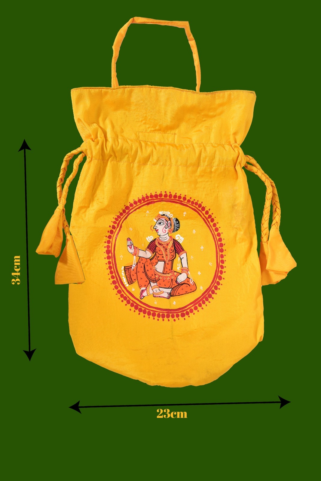 • Art: Hand-painted Pattachitra dancer motif (both sides)