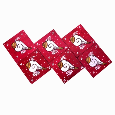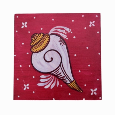 | Colour | Sindoor Red base with White Shankha motif and brown folk detailing |